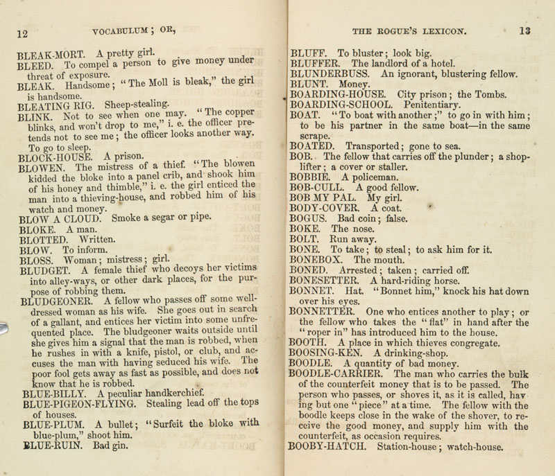 George W. Matsell. Vocabulum; or, The Rogue’s Lexicon. New York: George W. Matsell & Co., 1859.